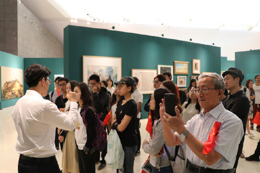 两校师生还就美术教育的历史、理念和作用进行了深入探讨,共同深化了对美育工作历史意义和社会价值的认识。此次参观和交流不仅让同学们对近代中国的百年历史有着更加直观而深刻的认识,同时体会到各族人民对美好生活孜孜不倦的奋斗和追求,更加坚定了同学们不忘初心、牢记使命的理想信念,以笔墨丹青书写对新中国成立70周年的美好祝愿。
