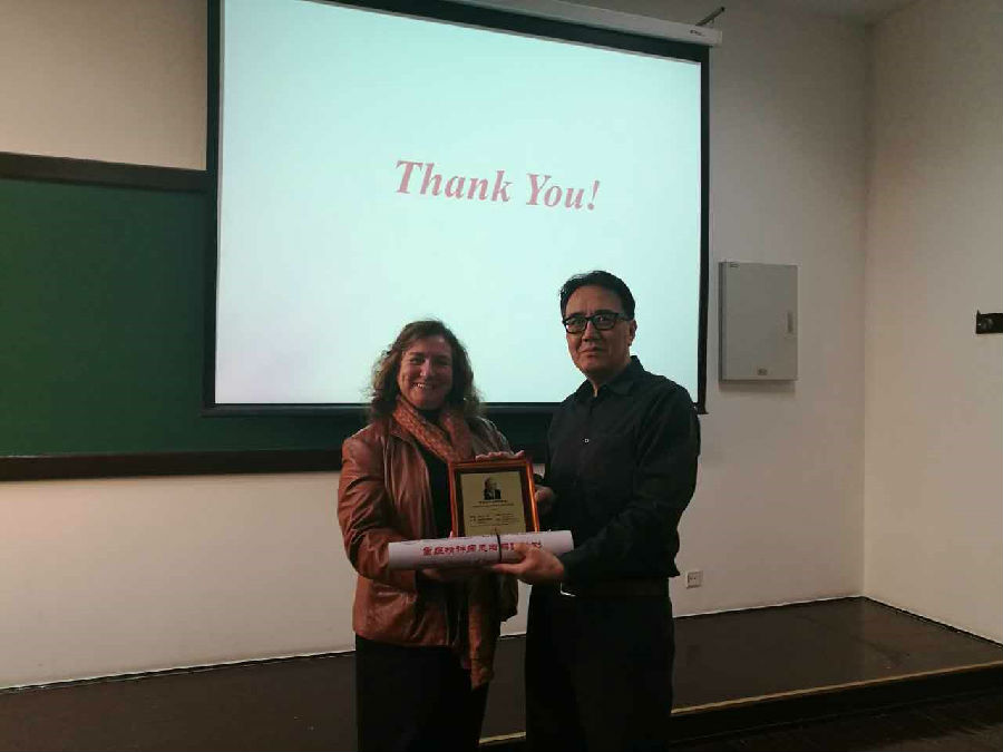 讲座最后,马丽杰·古德教授一一回应了现场师生热烈的提问与讨论,景军教授为其颁发讲座纪念证书。