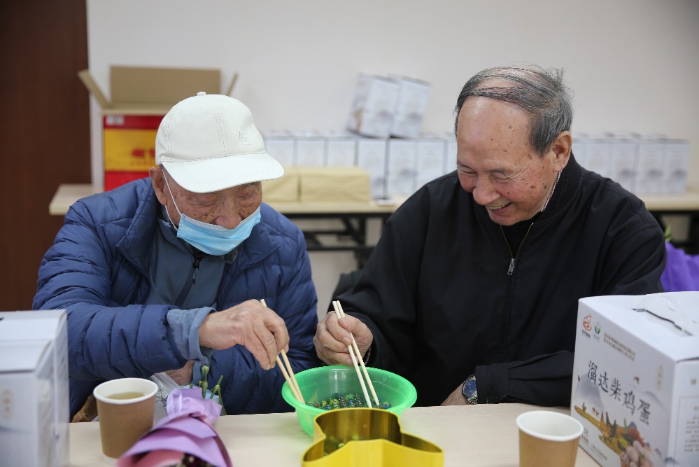 座谈交流尾声,部分离退休老师们参加了套圈、贴鼻子、筷子夹弹珠等多项趣味运动会项目。94岁高龄的詹炳源老师夹起弹珠来速度飞快,87岁高龄的离休干部刘元亮老师套圈几乎百发百中,老同志们在欢声笑语中相约明年继续比赛。